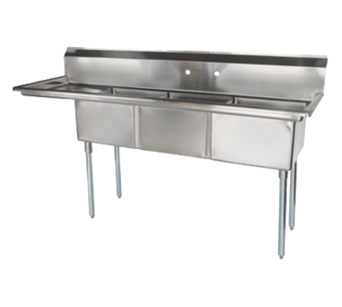 Sink, 3-compartment, with 18" left-hand drainboard, 18" front-to-back x 18" wide sink compartments, 11" deep bowls, 11"H backsplash, 18/304 stainless steel bowls, galvanized gussets & tubular legs with adjustable ABS feet, NSF