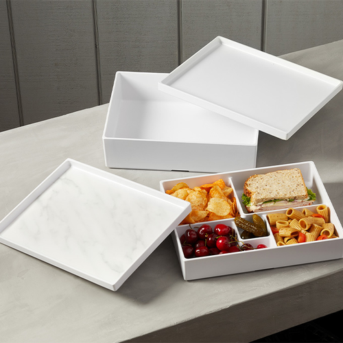Bento Box, 10.8"L x 8.25"W x 2"H, 5-compartment, rectangular, ABS plastic, white