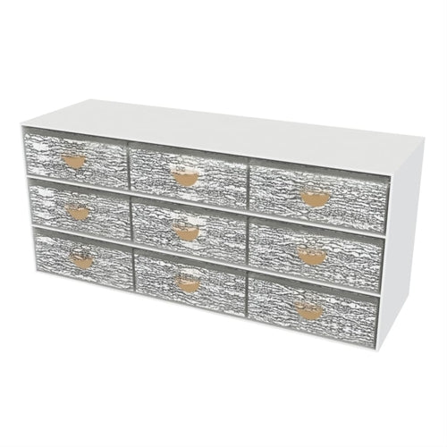 Bento Lunch Box Server, 17-1/10" x 5-1/2" x 7-7/10"H, 3-tier, (9) Lunch Bento lunch box drawers with handles & covers, re-fill from back, stackable up-to two Lunch Bento servers, glass, crackled pattern, milk white, My Glass Studio