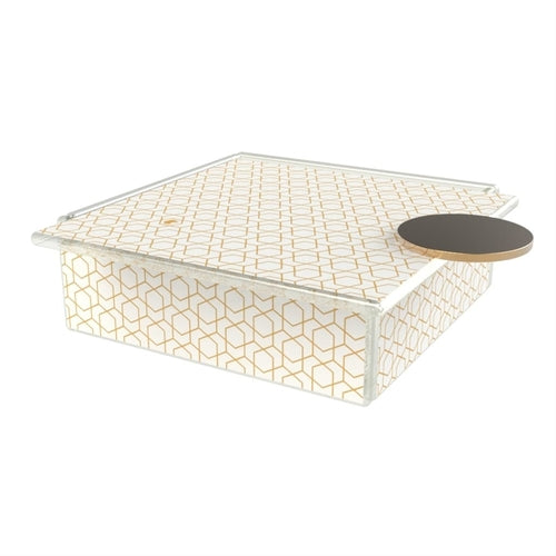 Bento Appetizer Plate Cover, 5-1/2" x 5-1/2" x 2"H, large, square, glass, white/gold, Rhombs 2D Double by My Glass Studio (Bowl)