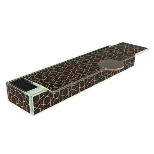 Bento Dinner Plate Cover, 11" x 2-4/5" x 3/10"H, long, rectangular, glass, black/gold, Rhombus 2D Double by My Glass Studio (COVER ONLY)