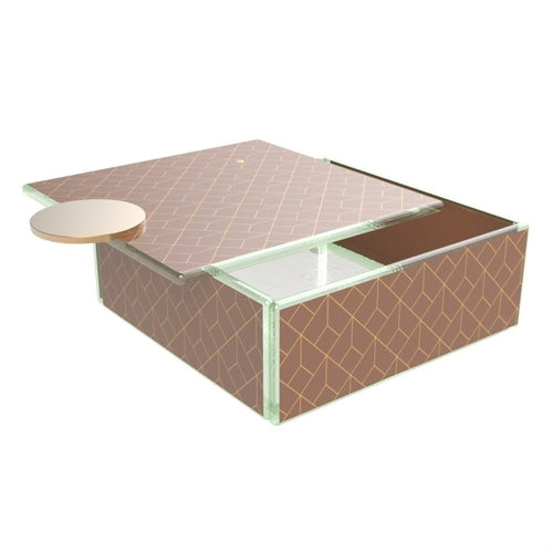 Bento Appetizer Plate, 26 oz., 5-1/2" x 2-1/5"H, large, square, with metal handles & lid, glass, tobacco brown/gold, Diamonds Double by My Glass Studio (this item is a kit)