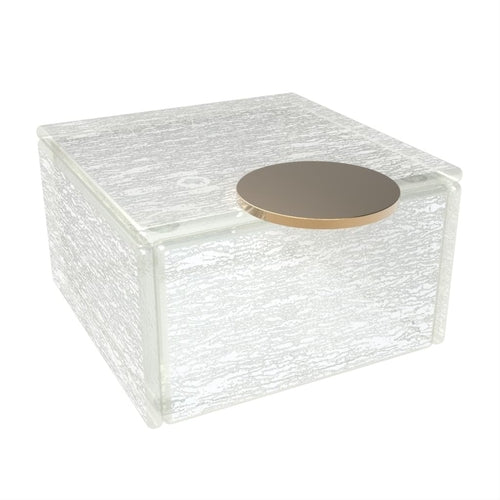 Bento Side Plate, 18-3/5 oz., 4-3/10" x 2-3/5"H, small, square, with metal handles & lid, glass, crackled white, My Glass Studio (this item is a kit)