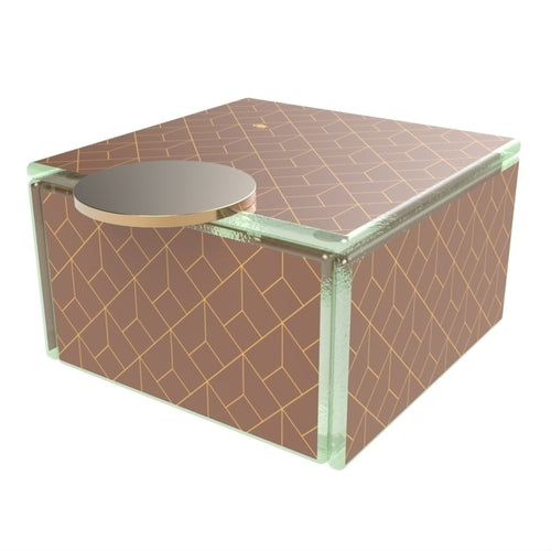 Bento Side Plate, 18-3/5 oz., 4-3/10" x 2-3/5"H, small, square, with metal handles & lid, glass, tobacco brown/gold, Diamonds Double by My Glass Studio (this item is a kit)