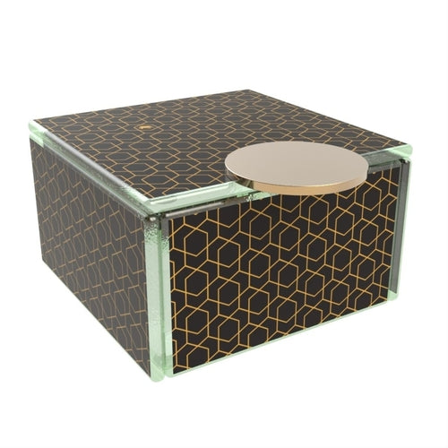 Bento Side Plate, 18-3/5 oz., 4-3/10" x 2-3/5"H, small, square, with metal handles & lid, glass, black/gold, Rhombus 2D Double by My Glass Studio (this item is a kit)