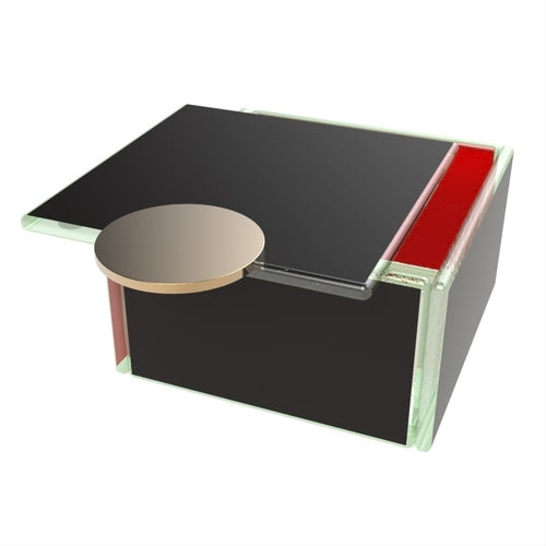 Bento Side Plate, 18-3/5 oz., 4-3/10" x 2-3/5"H, small, square, with metal handles & lid, glass, black exterior/red interior, Tempest by My Glass Studio (this item is a kit)