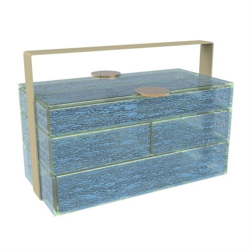 Bento Dinner Plate Basket Holder, 11" x 5-1/2" x 8"H, includes: (1) large bento dinner plate, (2) large square and (2) long rectangle cutlery cases, glass, crackled Niagara blue, My Glass Studio (this item is a kit)