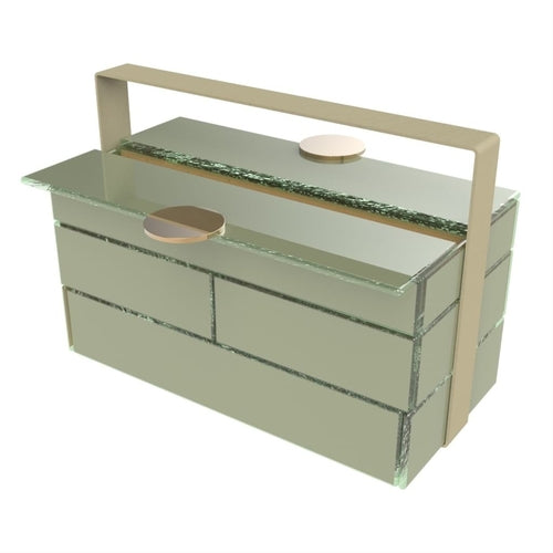 Bento Dinner Plate Basket Holder, 11" x 5-1/2" x 8"H, includes: (1) large bento dinner plate, (2) large square and (2) long rectangle cutlery cases, glass, grey exterior/gold interior, Tempest by My Glass Studio (this item is a kit)