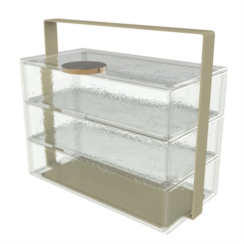 Bento Dinner Plate Basket Holder, 8-7/10" x 4-3/10" x 8"H, includes: (3) small rectangular bento dinner plates, (1) rectangular lid/cover, glass, clear, My Glass Studio (this item is a kit)