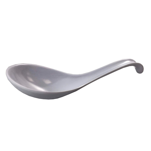 Chinese Soup Spoon, with hook handle, white plastic (dozen)