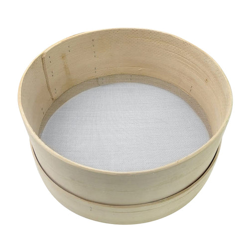 Drum Sieve, 13-3/4" dia. x 5-1/8"H x 1x1 mm holes, stainless steel mesh, pine wood