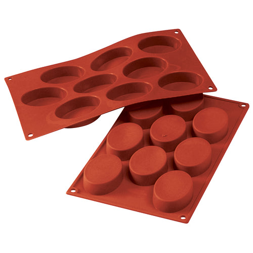 Oval Baking Mold, 9-count, 1-5/8 oz. (50 ml), 2-3/4"L x 2"W x 3/4"H, silicone