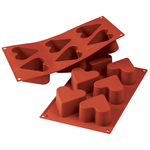 Heart Baking Mold, 6-count, 4-3/8 oz. (130 ml), 2-1/2" dia. x 1-1/2"H, silicone