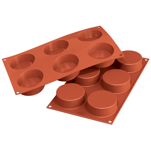 Cake Baking Mold, 6-count, 3-1/2 oz (103.5 ml), 2-3/4" dia. x 1-1/16"H, round, straight sided, silicone