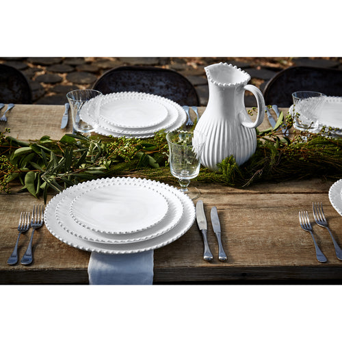Plate, 13-1/2" dia. x 5"H, large, round, footed, freezer safe, fine stoneware, Pearl Collection, white