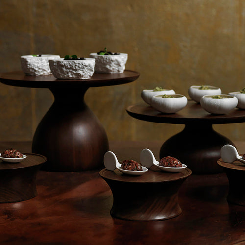 Cake Stand, 6-2/5" dia. x 2-7/10"H, small drum, oak, matt laquer