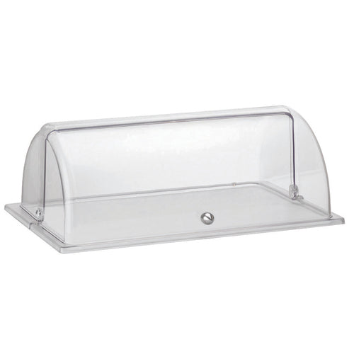 Frilich® Elegance Dome Cover, 21-3/5"W x 13-7/10"D x 9-1/2"H, rectangular, roll top, stainless steel knob, plastic, clear (fits ETO000E001 bread board & EFC000E019 cold food display set)