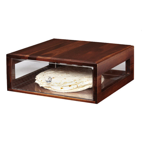 Bread Box, 14-3/4"W x 12-3/4"D x 5"H, rectangular, stackable, with acrylic drawer, wood, walnut