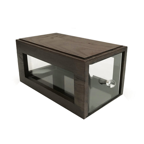 Bread Box, 12-1/4"W x 6"D x 6"H, square, stackable, with acrylic drawer, wood, gray ash