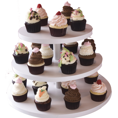 Cupcake Stand, 12-1/4"H, top 12", middle 15", bottom 18", small, 3-tier, white MDF wood/laminate