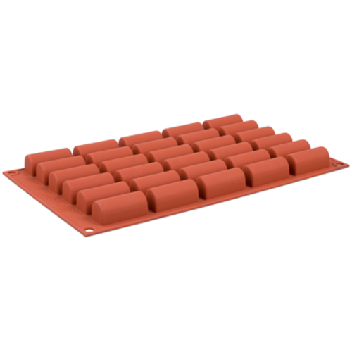 Pavoni Mold, 12"L x 7"W, (30) mini buche, 1-7/10"L x 1-1/5"W x 7/10"H with 5 oz. capacity each, temperature range -10° to +500°F, non-stick, dishwasher safe, flexible, silicone, orange