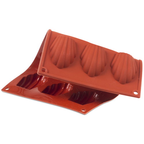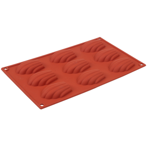 Silikomart Mold, 12"L x 7"W, (9) madeleine, 2-5/8"L x 2/3"H with 3/16 oz. capacity each, temperature range -10° to +500°F, non-stick, dishwasher safe, flexible, silicone, orange