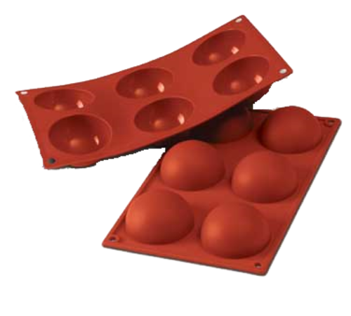 Siloconflex Mold, half spheres, (1) mold, (6) 1.37"H x 2.75" dia. sections, 7" x 11-3/4"OA, high-conductivity alimentary pure silicone, non-toxic, non-stick