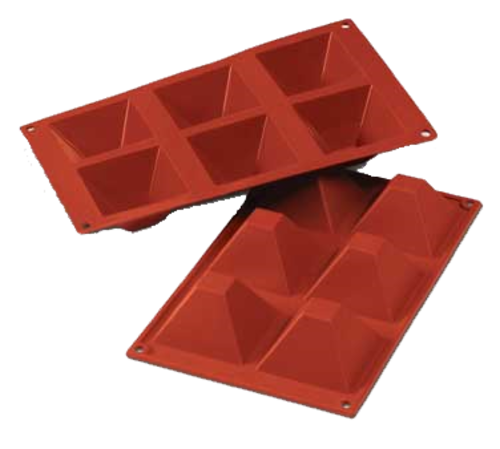 Siloconflex Mold, pyramids, (1) mold, (6) 1.57"H x 2.79"W. sections, 7" x 11-3/4" OA, high-conductivity alimentary pure silicone, non-toxic, non-stick