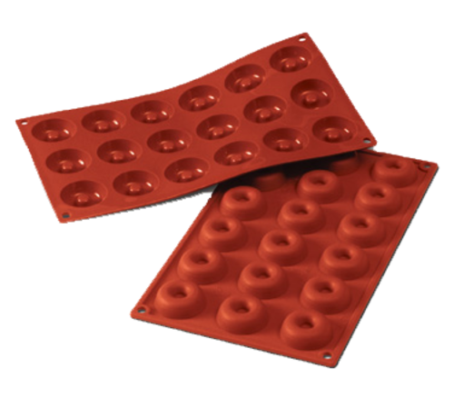 Siloconflex Mold, mini-savarin, (1) mold, (18) 0.47"H x 1.61" dia. sections, 7" x 11-3/4" OA, high-conductivity alimentary pure silicone, non-toxic, non-stick