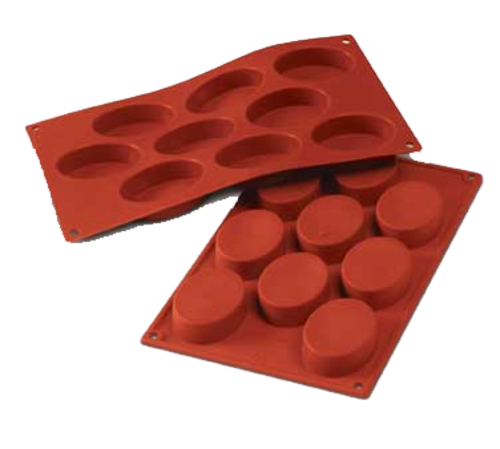 Siloconflex Mold, oval, (1) mold, (9) 0.78"H x 2.75" sections, 7" x 11-3/4" OA, high-conductivity alimentary pure silicone, non-toxic, non-stick