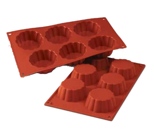 Siloconflex Mold, briochette, (1) mold, (6) 1.18"H x 3.10" dia. sections, 7" x 11-3/4" OA, high-conductivity alimentary pure silicone, non-toxic, non-stick