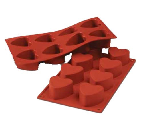 Siloconflex Mold, heart, (1) mold, (8) 1.37"H x 2.35" dia. sections, 7" x 11-3/4" OA, high-conductivity alimentary pure silicone, non-toxic, non-stick
