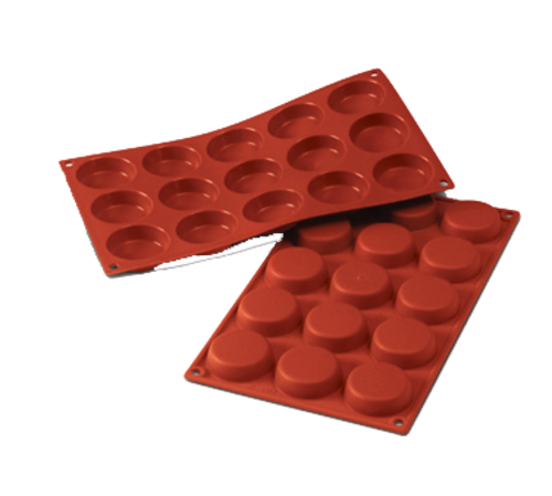 Siloconflex Mold, flan mold, (1) mold, (15) 0.55"H x 1.96" dia. sections, 7" x 11-3/4" OA, high-conductivity alimentary pure silicone, non-toxic, non-stick