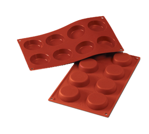 Siloconflex Mold, flan mold, (1) mold, (8) 0.67"H x 2.35" dia. sections, 7" x 11-3/4" OA, high-conductivity alimentary pure silicone, non-toxic, non-stick