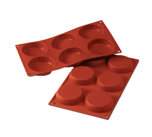 Siloconflex Mold, flan mold, (1) mold, (6) 0.71"H x 3.14" dia. sections, 7" x 11-3/4" OA, high-conductivity alimentary pure silicone, non-toxic, non-stick
