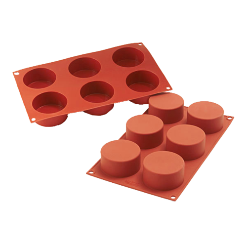 Silikomart Siliconflex Mold, cylinder, makes (6) 4-1/2 oz. pieces (2-3/4" dia., 1-1/3" H), flexible, tolerates temperatures from -76° to +446°F, microwave, freezer, and dishwasher safe, non-stick silicone, non-toxic, made in Italy