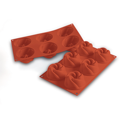 Silikomart Siliconflex Mold, mini vertigo, makes (6) 3-3/4 oz. pieces (3" dia., 1-1/2" H), flexible, tolerates temperatures from -76° to +446°F, microwave, freezer, and dishwasher safe, non-stick silicone, non-toxic, made in Italy