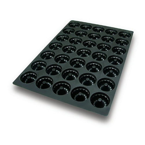 Silikomart Mold, mid-gugelhopf, makes (35) 2-3/4 oz pieces, flexible, microwave, freezer, fan-assisted oven, and dishwasher safe, non-stick silicone, made in Italy