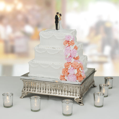 Tabletop Classics Cake Stand, 22" x 6"H, square, reinforced feet with up to 250 lb. capacity, plain hammered top, nickel-plated brass