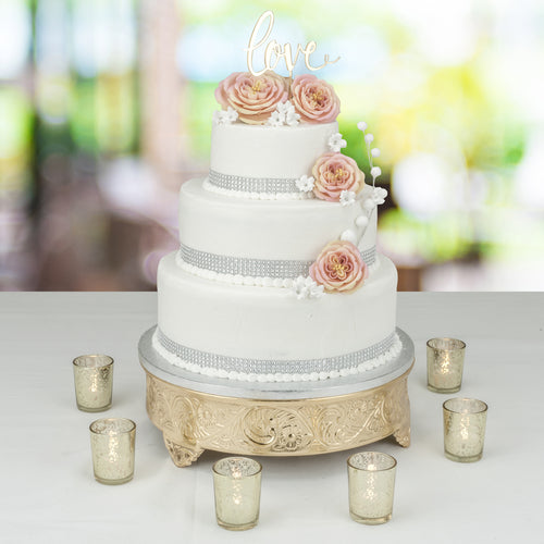 Tabletop Classics Cake Stand, 18" dia. x 5"H, round, reinforced feet with up to 150 lb. capacity, floral design sides, hammered center top, brass with gold finish