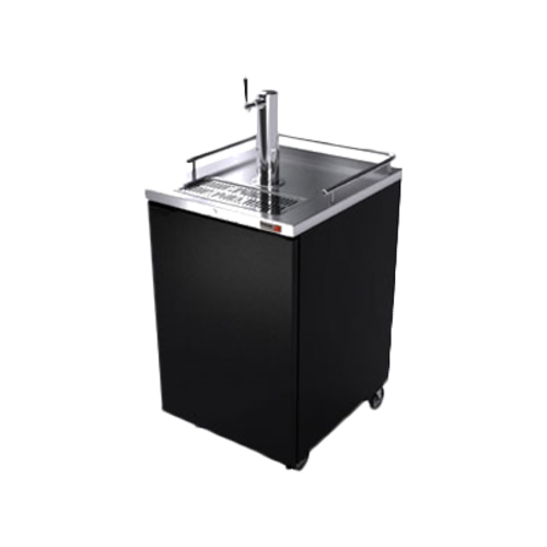 19072201 Draft Beer Cooler, Portable, (1) keg capacity, black exterior finish, 18 ga. stainless steel top, stainless steel interior, stainless steel floor with removable polymer floor protector, analog thermostat, (1) single faucet tower, (1) door with locks, self-contained refrigeration, castors, 1/6 hp, ETL cETLus, UL, NSF, Made in North America
