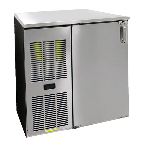 Cooler, one zone, front serviced, low profile, 32"W, one-section, 16"W door opening, self-contained refrigeration, LED interior lighting, front venting, stainless steel interior & exterior sub-top, (2) adjustable shelves per door, R290 Hydrocarbon refrigerant, 1/8 HP, NSF Standard 7 for open food storage, cETLus, ETL-Sanitation, ETL Verified