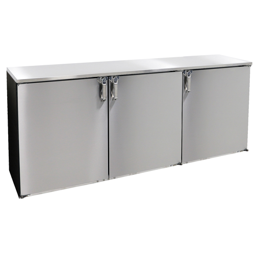 Cooler, one zone, designed for remote refrigeration, low profile, 72"W, three-section, 20"W door opening, LED interior lighting, stainless steel interior & exterior sub-top, (2) adjustable shelves per door, NSF Standard 7 for open food storage, cETLus, ETL-Sanitation