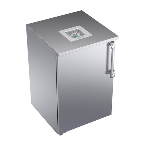 Back Bar Liquid CO2 Glass Froster Cabinet, one-section, 24"W x 24"D, high-performance liquid CO2 glass froster built into stainless steel top, LED indicator for when froster is in use, (1) solid hinged door with lock, reinforced floor rack for CO2 tank storage, galvanized interior, stainless steel exterior, 10' CO2 line, 50 watts, 100-240v/50/60/1-ph, plug included (Recommended to use a dedicated 20LB aluminum CO2 cylinder with siphon tube (tank not included))