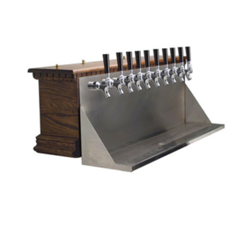 Irish Coffin Box Draft Beer Tower, countertop, 36"W x 12-1/4"H, air-cooled, (10) stainless steel faucets (handles not included), stainless steel fascia, 34"W x 8"D integrated stainless steel drip tray with removable perforated insert & threaded drain, dark oak finish, custom engraving available on front