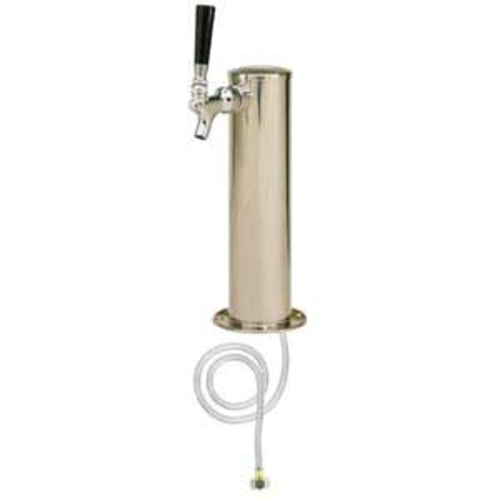 Column Draft Beer Tower, countertop, 3" dia. x 12-1/4"H, air-cooled, (1) chrome-plated brass faucet (handle not included), 9-1/4" faucet clearance, 4-1/2" dia. base, 304 stainless steel product line, chrome-plated bonnet & collar, mounting gaskets & hardware provided, polished stainless steel finish, NSF