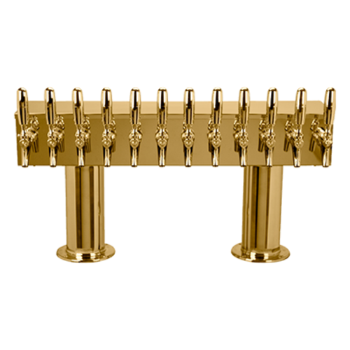Double Pedestal Draft Beer Tower, countertop, 36"W x 15-9/16"H, air-cooled, (12) brass faucets (handles not included), 3" OC, 11-5/8" faucet clearance, (2) 4" columns with 6" dia. bases, mounting gaskets & hardware provided, PVD brass finish
