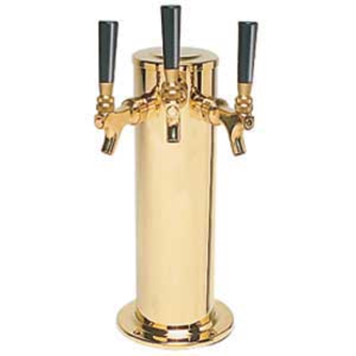 Column Draft Beer Tower, countertop, 4" dia. x 13-3/4"H, air-cooled, (3) brass faucets (handles not included), 10-3/8" faucet clearance (11-1/8" center faucet), 6" dia. base, mounting gaskets & hardware provided, PVD brass finish