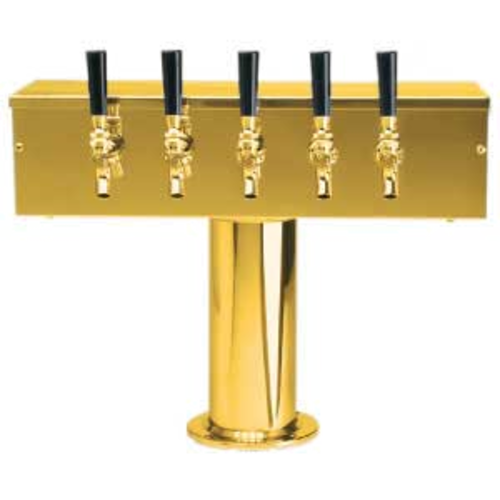 T Style Draft Beer Tower, countertop, 20"W x 15-1/2"H, air-cooled, (5) brass faucets (handles not included), 3" OC, 11-1/4" faucet clearance, 11-5/8" faucet clearance, 4" dia. column with 6" dia. base, mounting gaskets & hardware provided, PVD brass finish