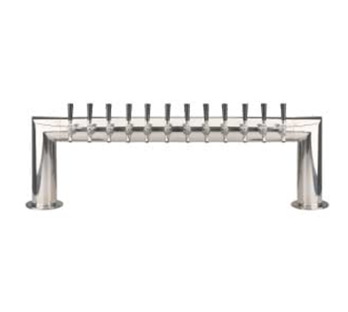 Pass-Thru Draft Beer Tower, countertop, 47"W x 14-1/4"H, air-cooled, (12) chrome-plated brass faucets (handles not included), 3" OC, 10-1/2" faucet clearance, (2) 4" dia. columns with 6" dia. bases, mounting gaskets & hardware provided, polished stainless steel finish